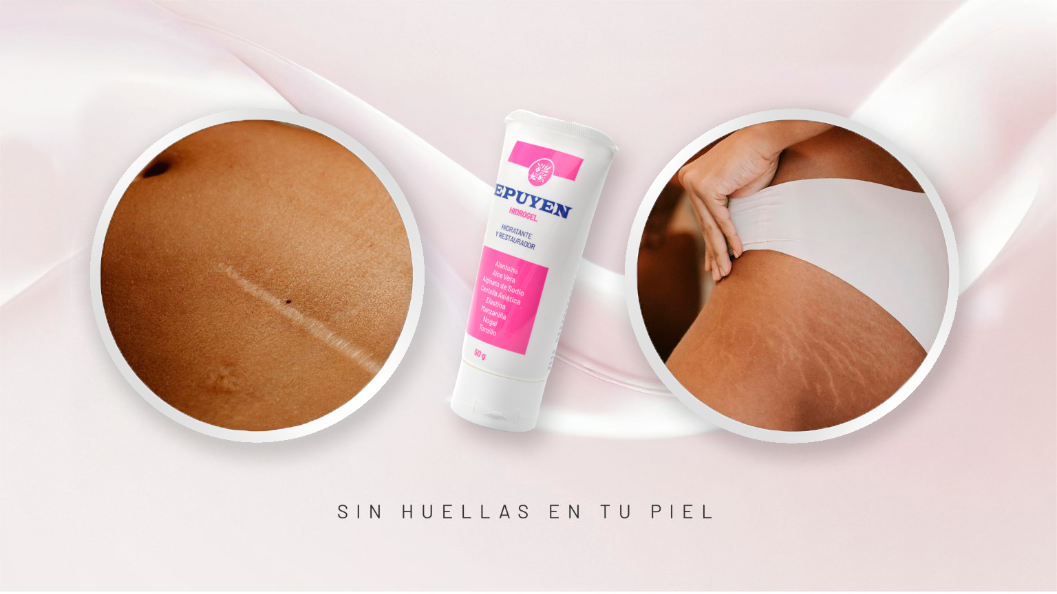 Epuyén Hidrogel es un producto avanzado formulado con Alginato, Su fórmula natural incluye ingredientes activos como Alantoína, Aloe Vera, Centella Asiática, Elastina, Aceite de Manzanilla, Aceite de Tomillo y Aceite de Nogal, brindando una solución eficaz y segura para el cuidado de la piel
